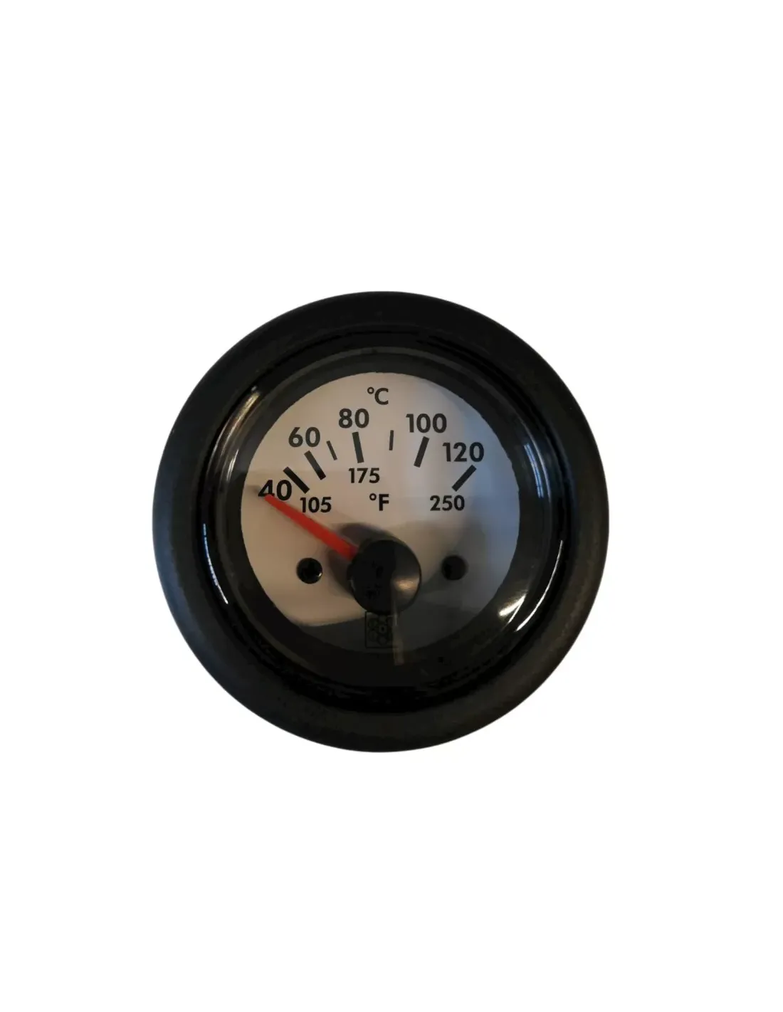 THERMOMETER 40-120°C KALIBRIERUNG VDO 24V ROTE BELEUCHTUNG Messbereich: 40-120° C Gehäusedurchmesser: Ø 52 mm Loch- und Befestigungsdurchmesser: Ø53 Befestigung mit Halterung Tiefe: 52 mm Eingang: VDO Sensor (287-23 O) Linse RQ Vorderseite der Serie: Doppelte Antikondensationskammer. Frontlinse der CR-Serie: Glas. Beleuchtung: Rot. Behälter: Nylon PA66. Anschluss: Fast-on. Stromversorgung: 24 VDC. Verbrauch: Maximal 150 mA. Beleuchtung. Betriebstemperatur: -10 70 °C Vorderseite Elektromagnetische Verträglichkeit: IEC60945 Stoß- und Vibrationsfestigkeit: IEC60945