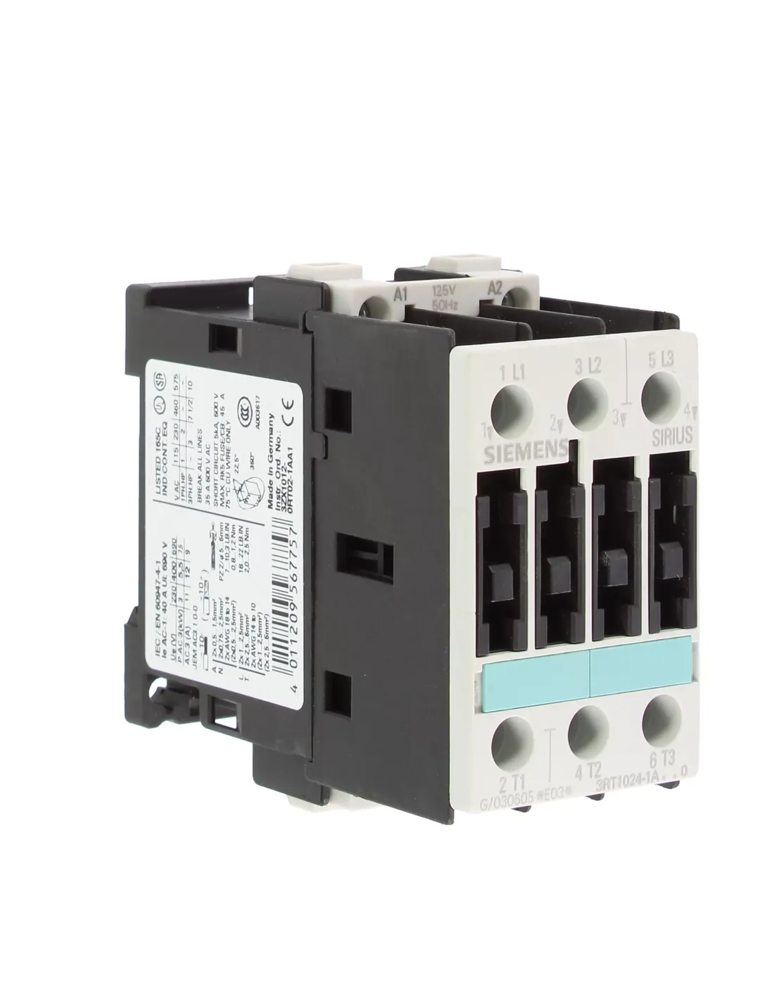 Siemens 3rt10241al00 Schütz S0 5,5 kW 125 V 50 Hz