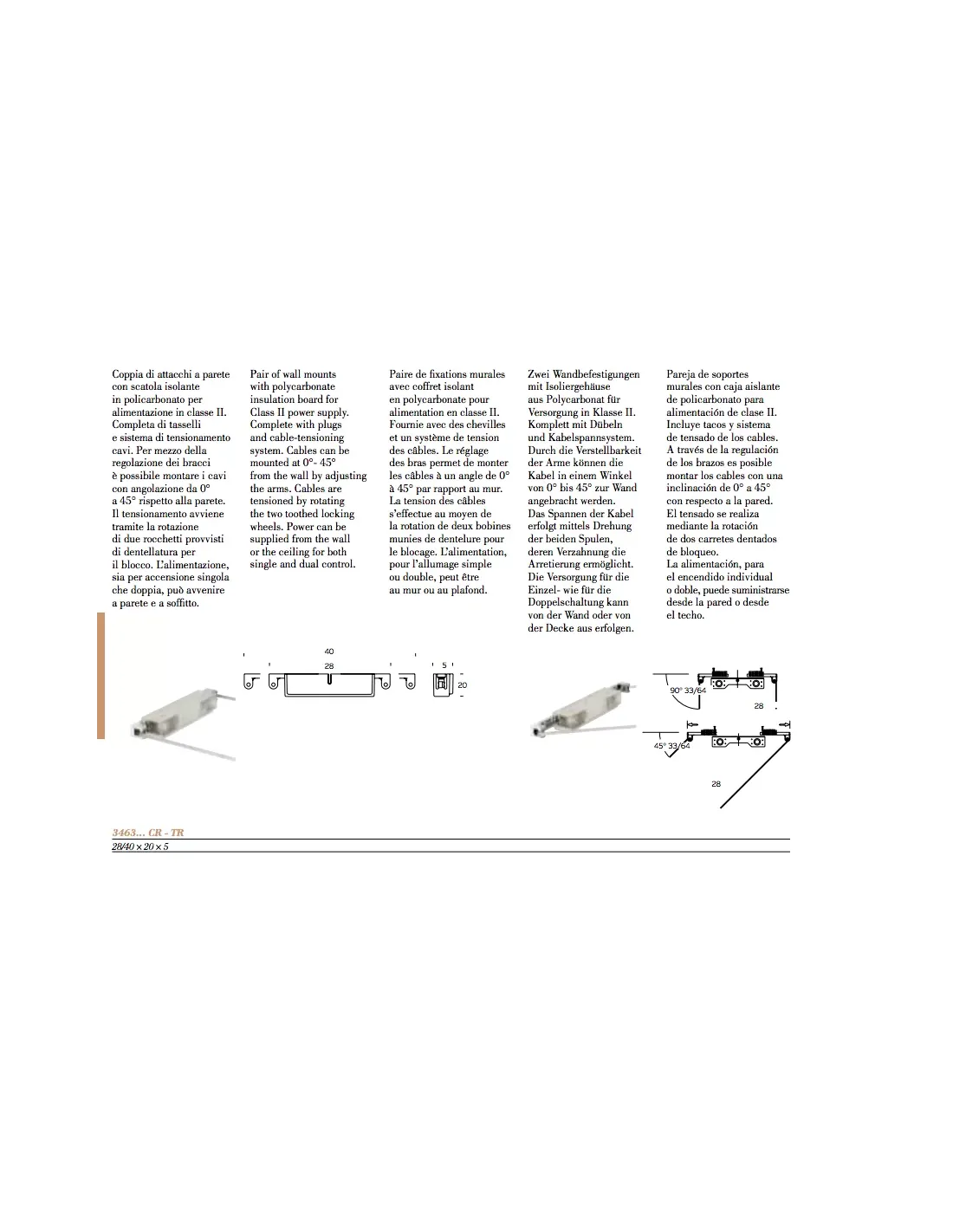 Bei den Fontana Arte 3463BI handelt es sich um ein Paar Parallelanschlüsse, die für die Installation von Drahtspannsystemen konzipiert sind. Diese Fassungen in ihrer weißen Ausführung bieten eine diskrete und funktionale Lösung für die Live-Beleuchtung.