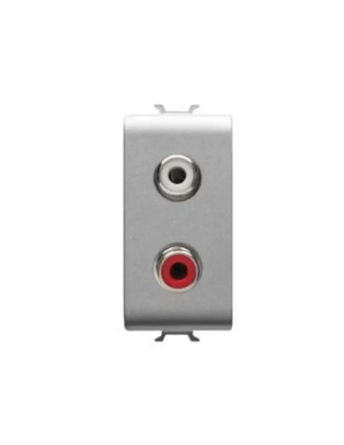 Civil-Serie – Gewiss-Signalsteckdosen GW14453 DOPPEL-RCA-ANSCHLUSS 1M TITAN GW14453 DOPPEL-RCA-ANSCHLUSS 1M TITAN DOPPEL-RCA-ANSCHLUSS – 1 MODUL – TITAN – CHORUS EIGENSCHAFTEN: GW14453, Doppel-RCA-Anschluss mit rotem und weißem Bolzen, Lötanschluss GW14454, Lötanschluss 46 Eingang und Ausgangsanschluss über F-Typ-Stecker GW14458, vordere Anschlüsse zum Einführen von starren Kabeln mit einem maximalen Querschnitt von 1,5 mm², rückseitiger Isolationsdurchdringungsanschluss für AWG24-Kabel oder maximaler Querschnitt von 0,25 mm²