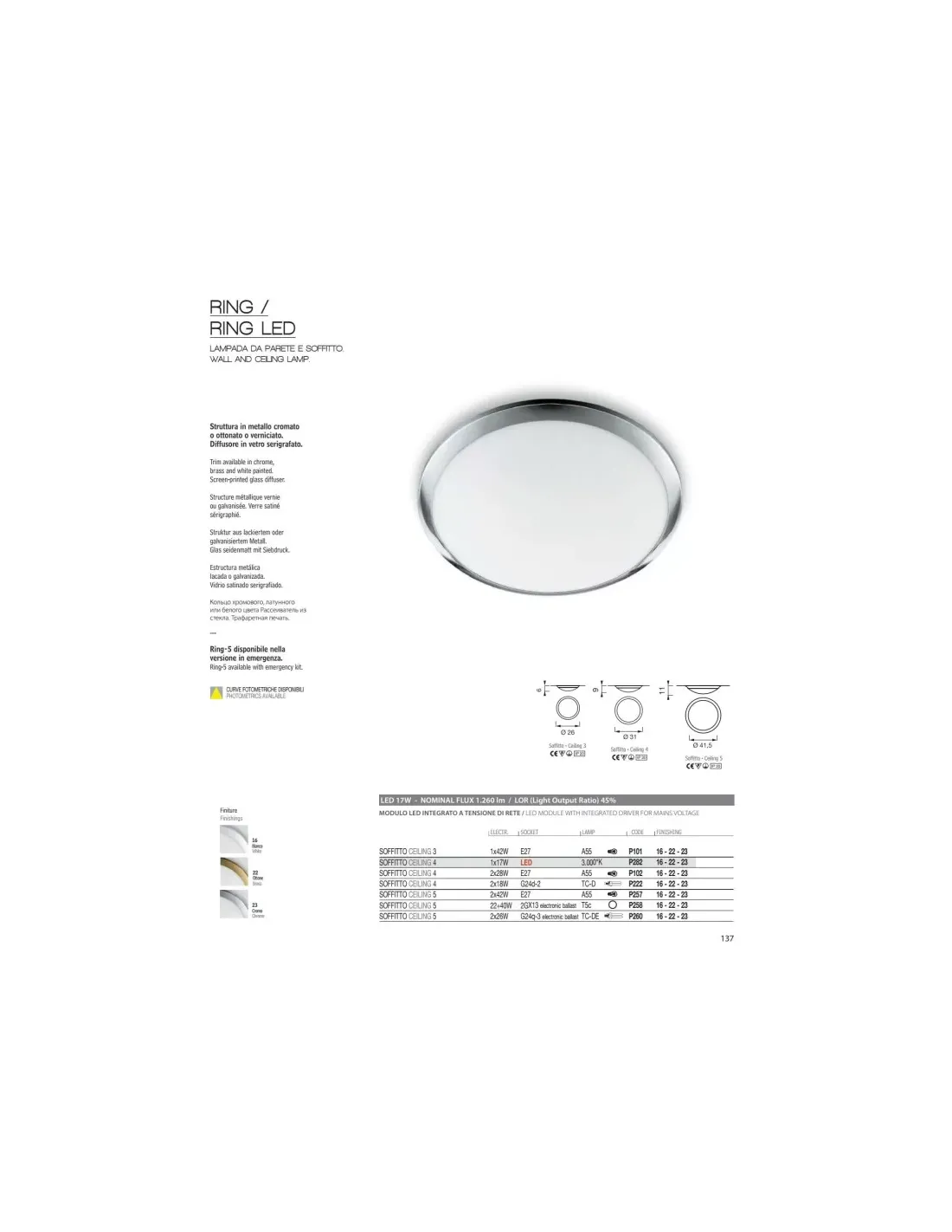 Lucente p257-22 ring-5 soff d 41,5 2x42w e27
