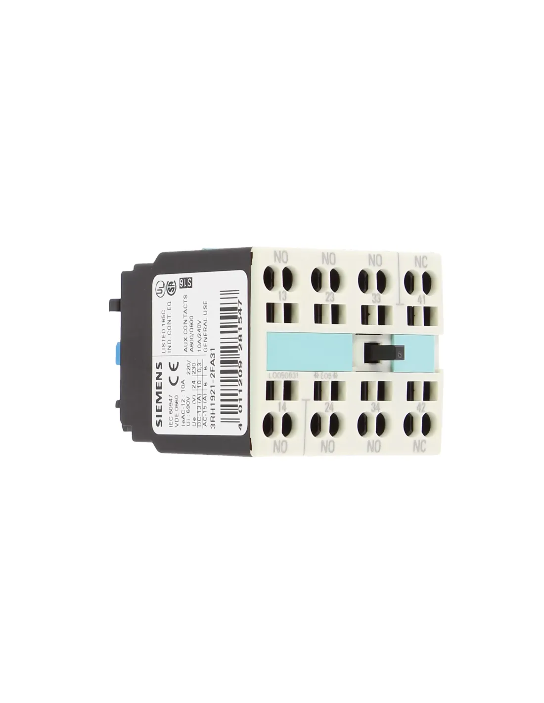 Siemens 3rh19212fa31 auxiliary contact block 3na+1nc for s0/s3 cage clamp