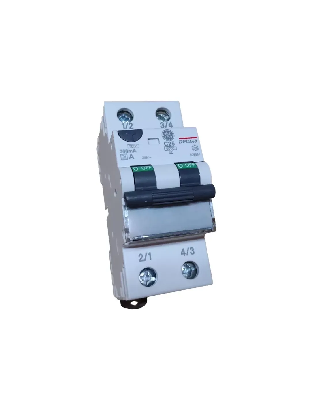 Ge power 606851 dpca60c25//300 differential circuit breaker 2p c25 6ka a//0.3