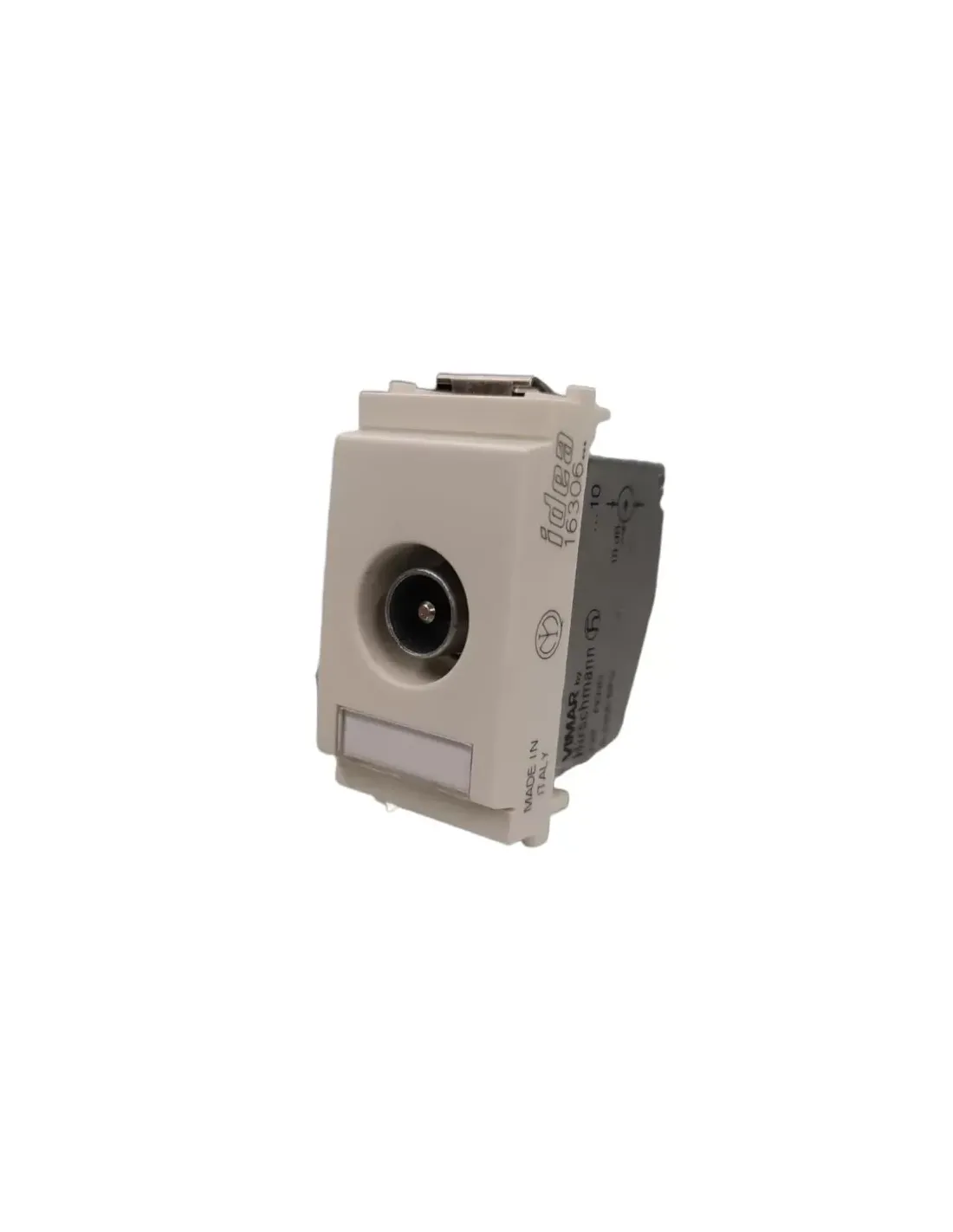 Vimar Idea coaxial TV pass-through socket, frequency 5-2400 MHz, with male connector, 10 dB attenuation, 1 module, white color