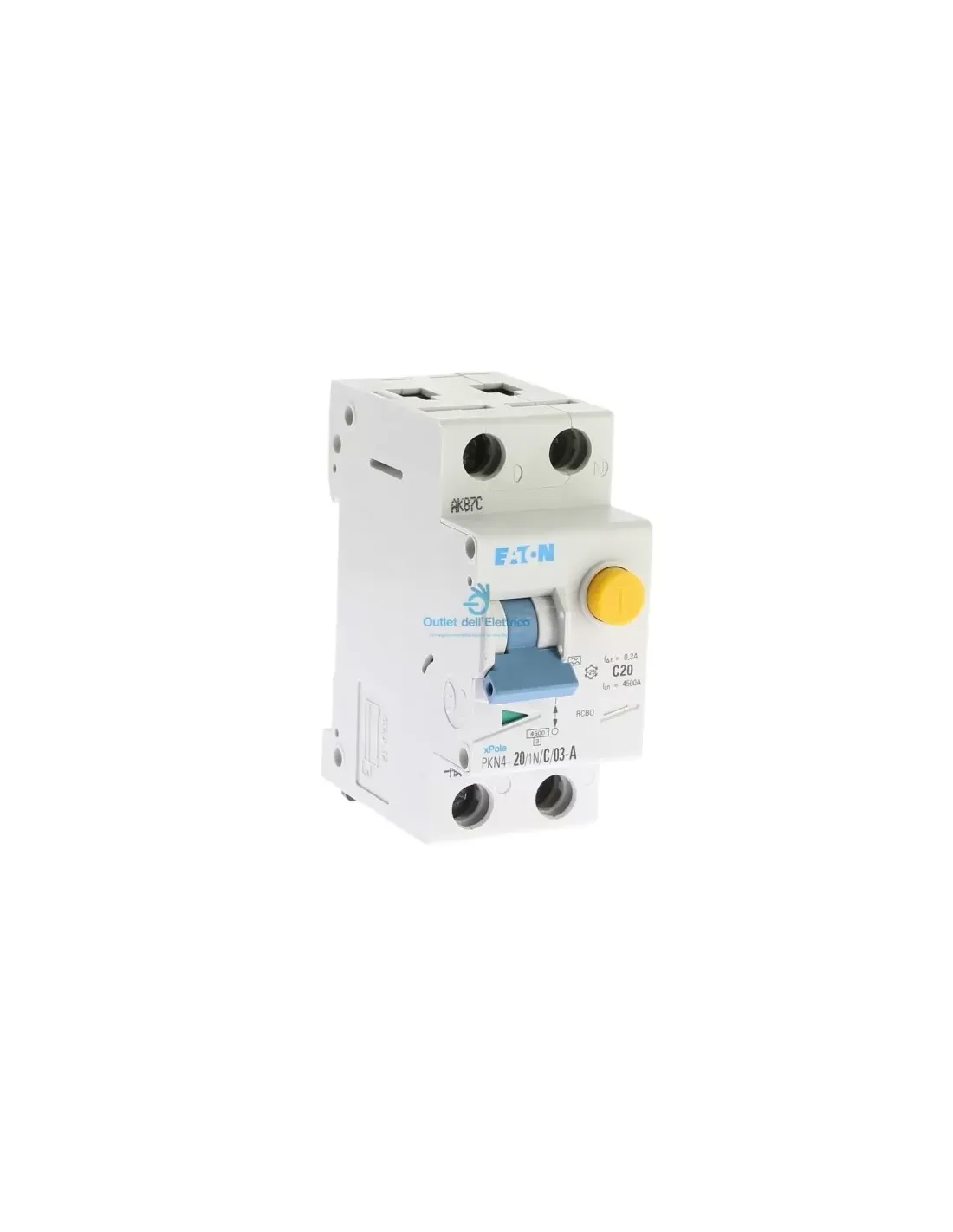 Eaton Pkn4-20/1n/c/03-a differential circuit breaker 1p+n 20a c 0.3 4.5ka cl.a