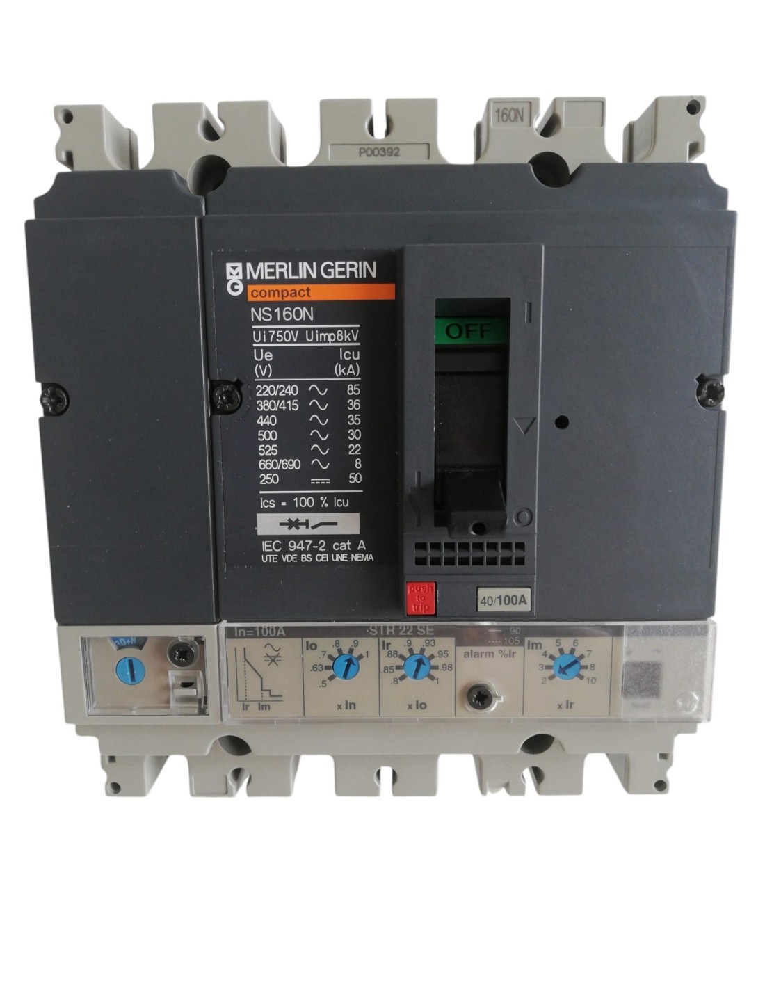 Merlin gerin 30781 ns160n fx circuit breaker 4p 100a 36ka with str22se release