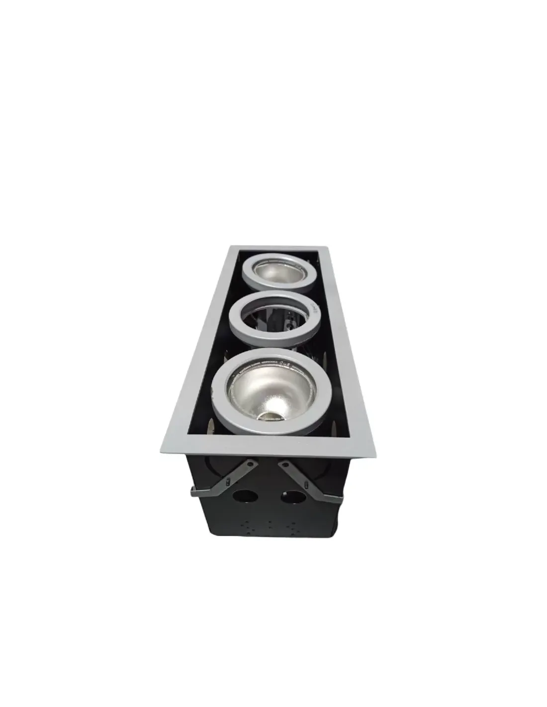 Product details code: 70710 name: MATRIX HIGH type: Recessed family: MATRIX // High intended use: Interior installation: Recessed ceiling recessed hole: Recessed hole 435 x 165 mm False ceiling thickness: 1-50 mm fixing: With brackets supplied body // structure: Steel sheet body painting: Polyester powder coating for interiors colour: Grey reflector optics: 99.8% pure aluminium reflector - Extractable and adjustable optics glass // screen: Clear tempered glass power supply: Not included; to be ordered separately insulation class: Class 1 weight: 3.400 kg IP degree: 20 glow wire: 650 °C total power: 35 W
