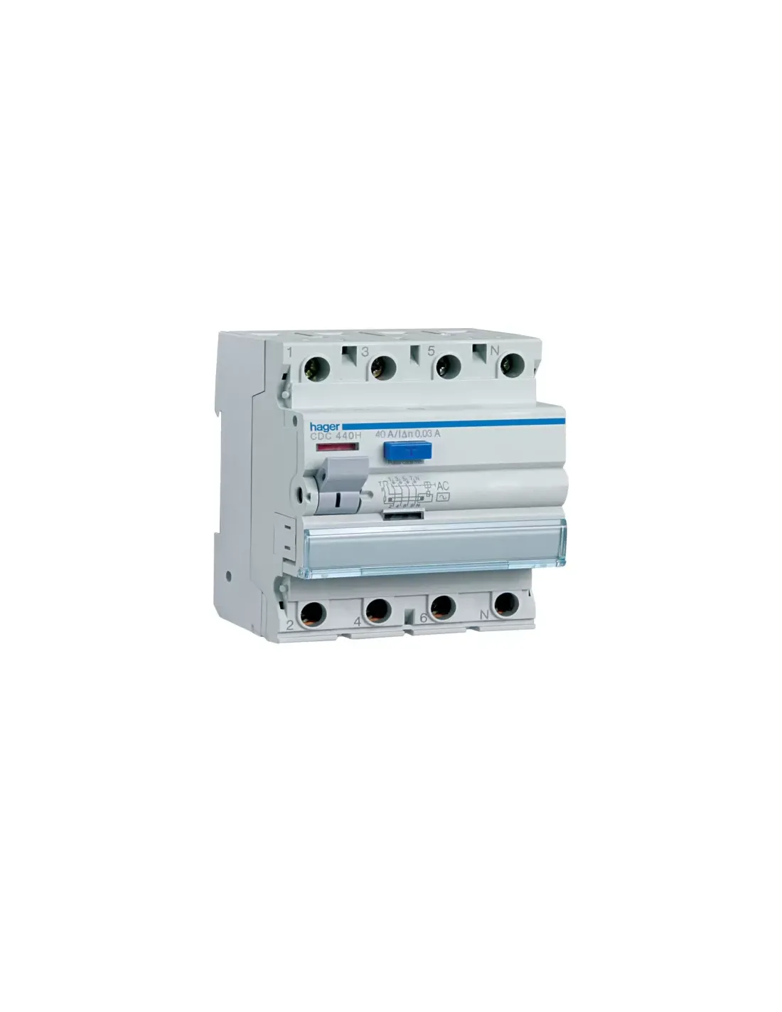Interruptor diferencial puro Hager cgc440h, accesible, 4p 500ma 40a, 4 módulos DIN