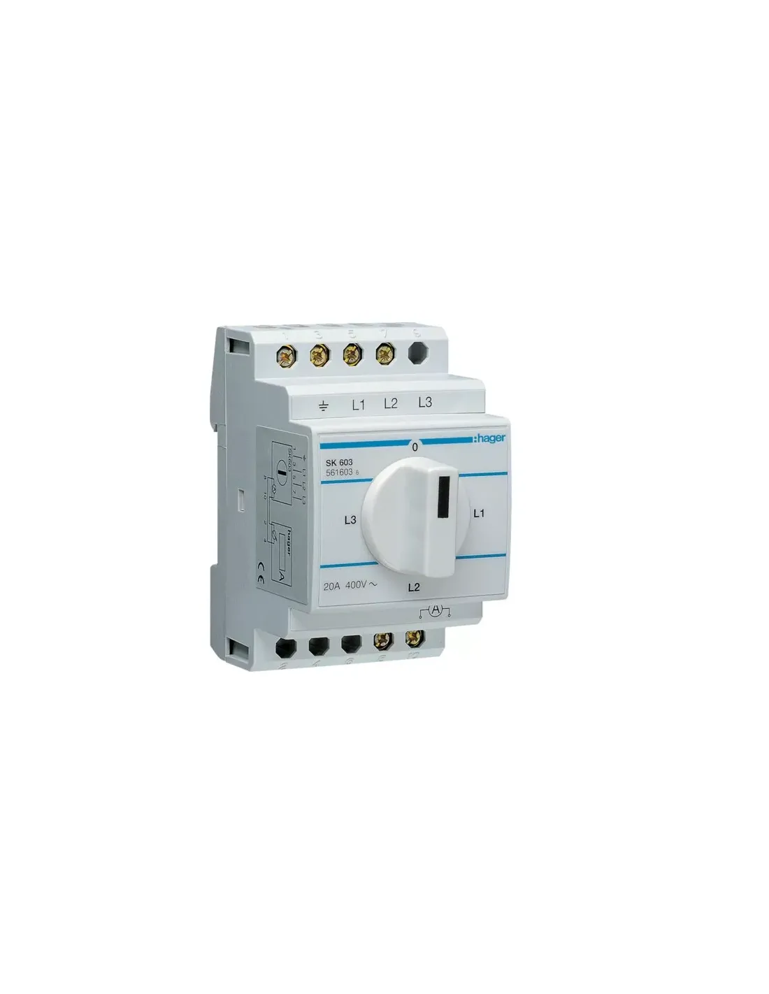 Interruptor de corriente para carril DIN de 3 módulos Hager sk603