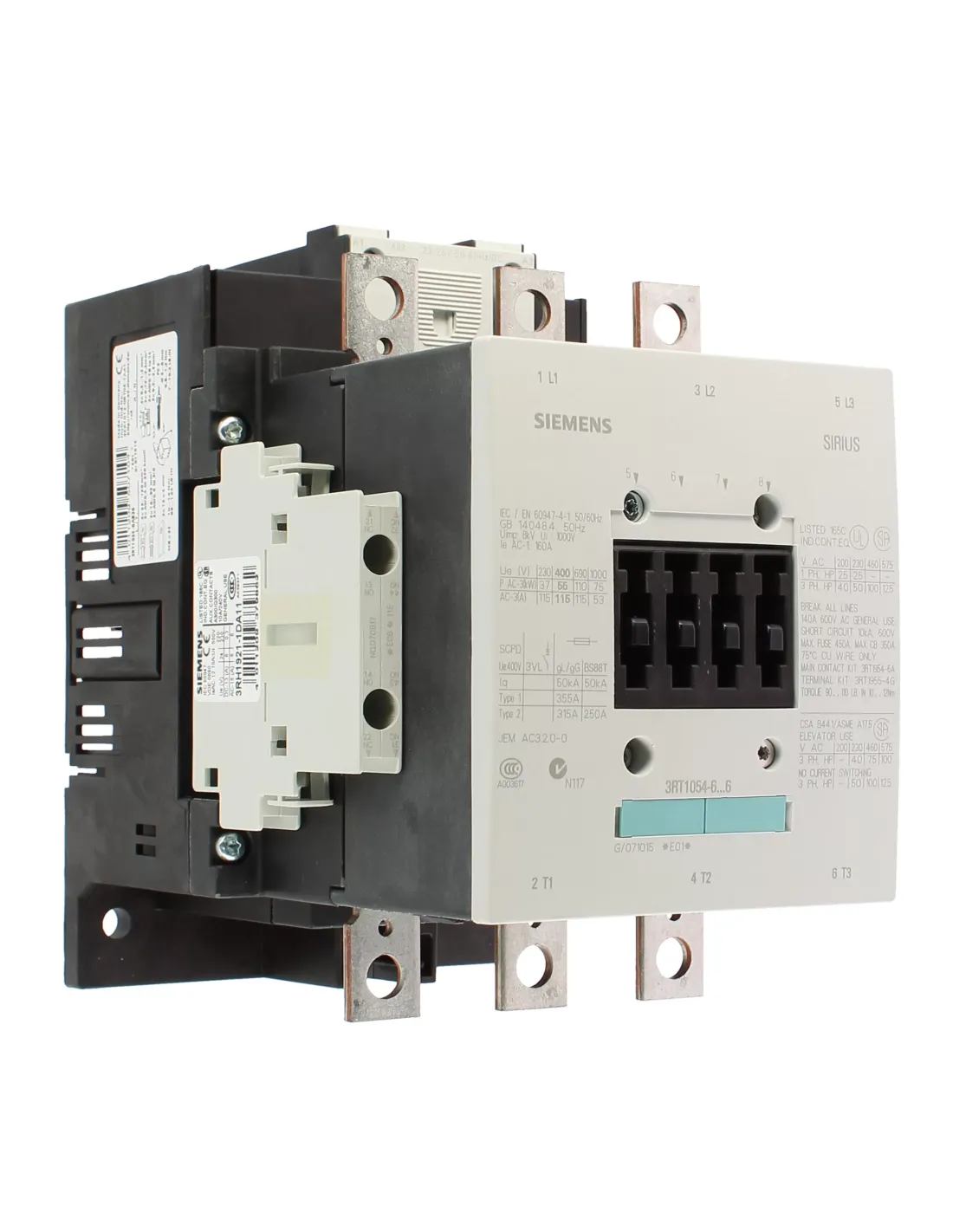 Contactor Siemens 3rt10546ab36 s6 55kw conv 23-26vuc sin cubierta