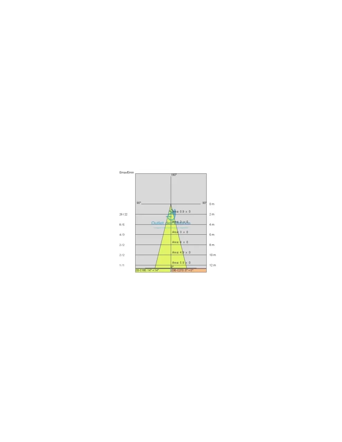 - Ángulo de haz: haz de inundación simétrico