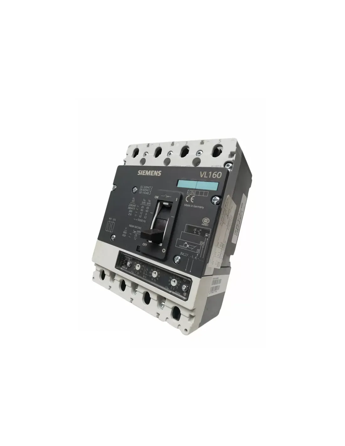 Siemens 3vl27161bd430ab1 vl160n interruptor de gestión 160a 4p 40ka tm