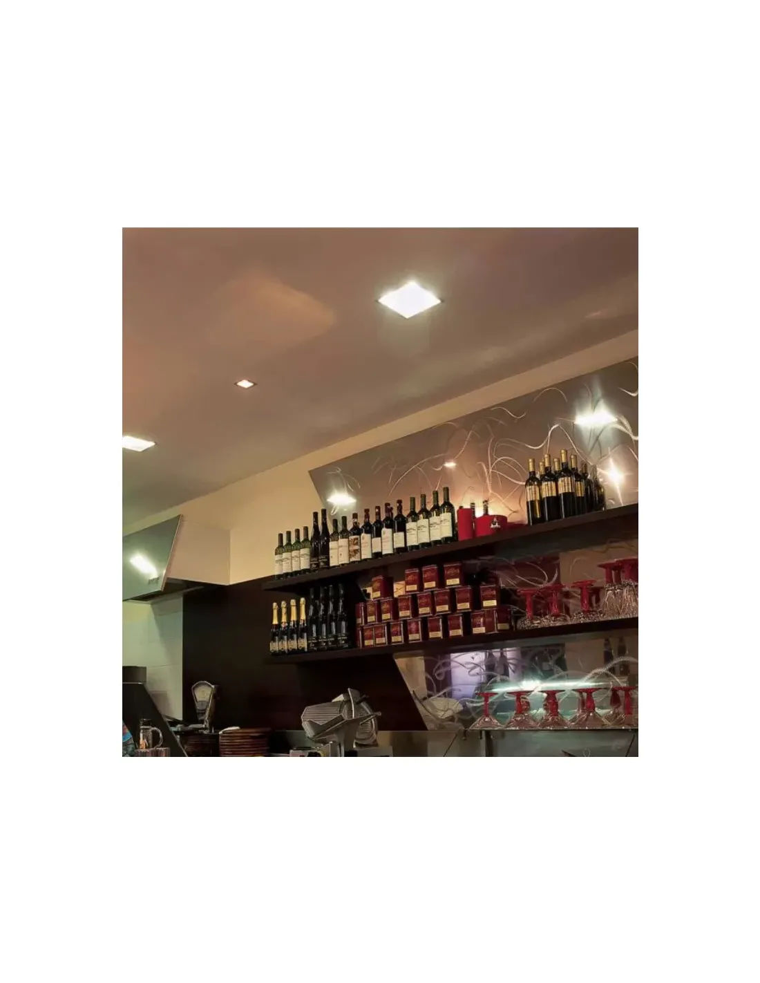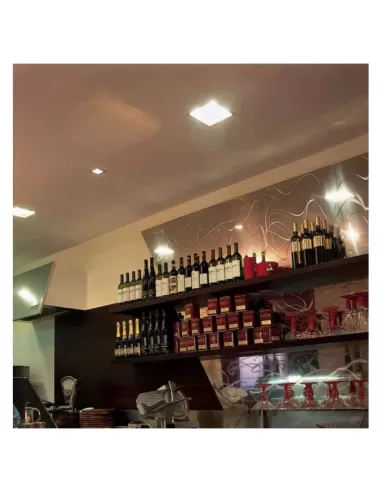 Características constructivas Instalación: empotrable Cuerpo de luminaria: material termoplástico autoextinguible Ópticas: policarbonato metalizado altamente especular Fuentes de luz: fluorescente compacta Acabados: blanco Accesorios: ópticas de luz oscura, aros decorativos en vidrio templado satinado blanco o color, pantallas difusoras en vidrio templado o policarbonato opalino, pantallas de luz Nivel de protección: IP23 Clase de aislamiento: I Alimentación: 230V - 50Hz
