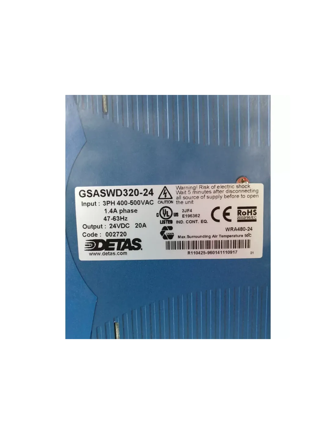 Alimentation à découpage Detas gsaswd320-24 triphasée 400//500 Vca 24 Vcc 20 A DIN 002720