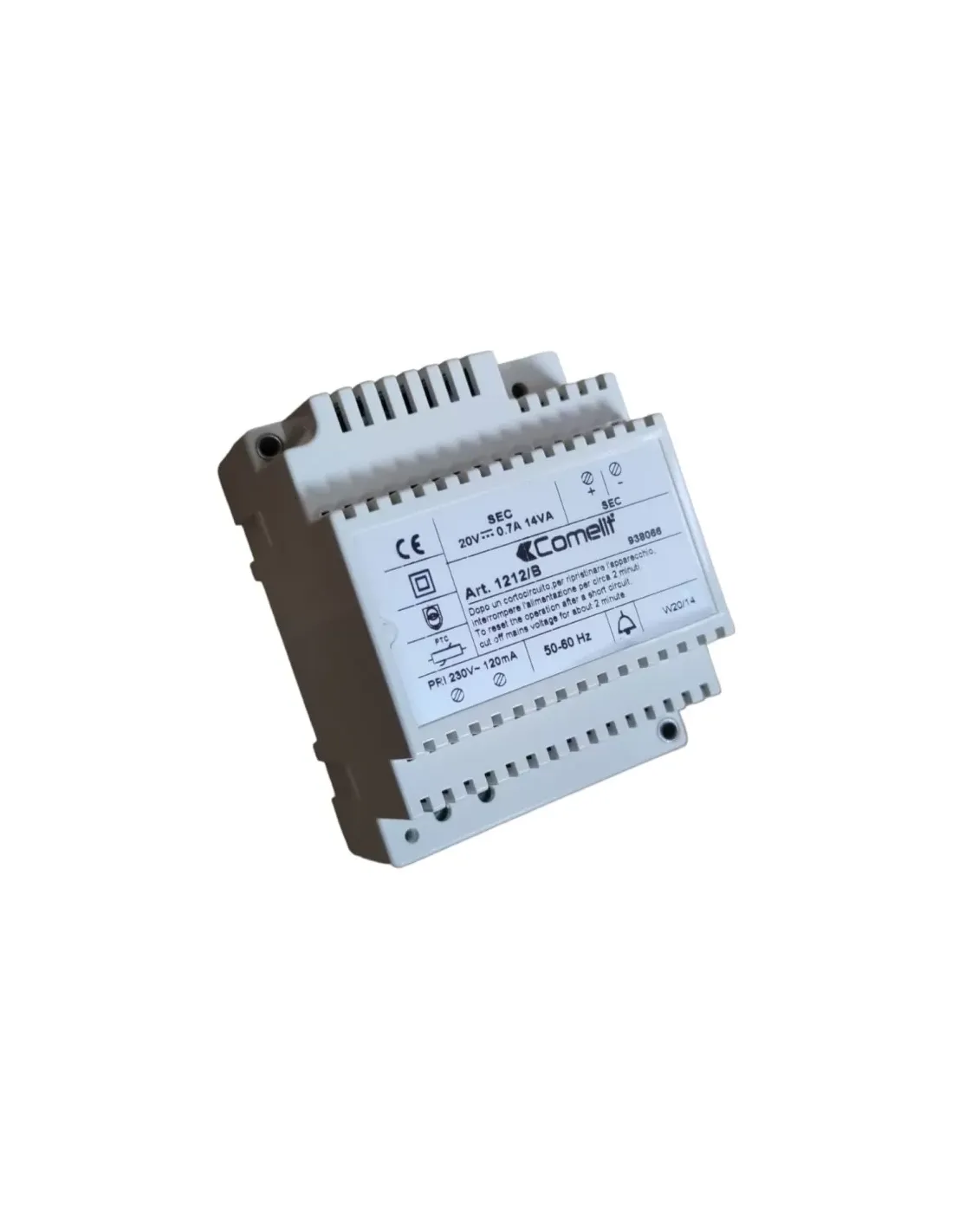 Alimentation Comelit 1212//b, entrée 20 Vcc 14 VA, 230 Vca