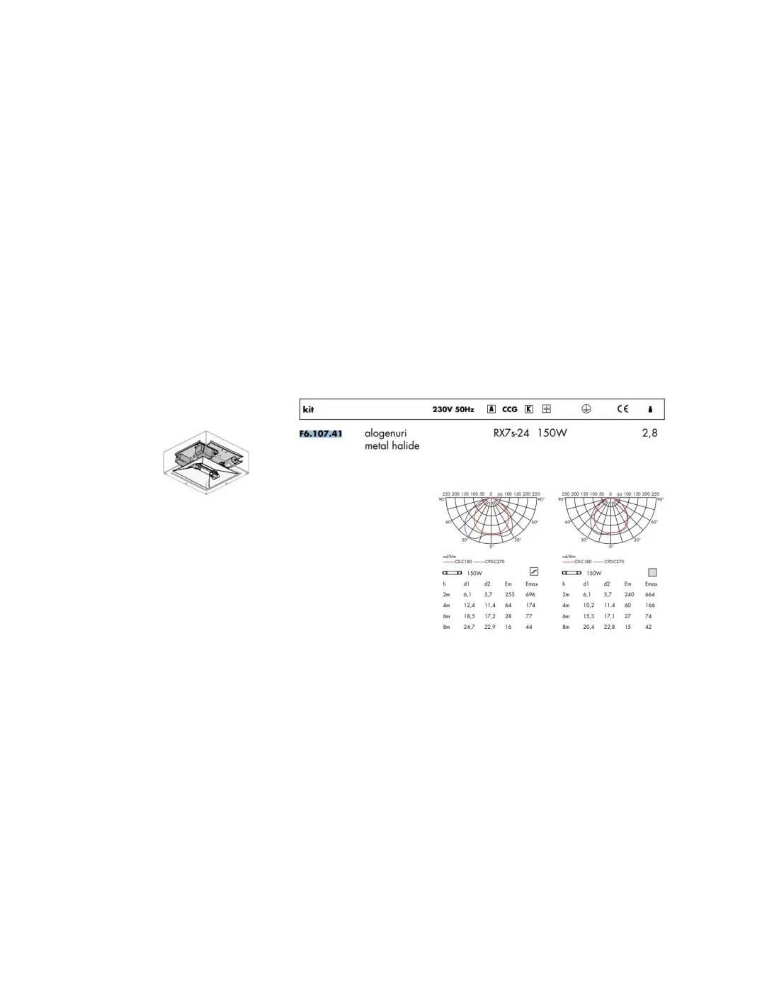 Kit Viabizzuno f6 107 41 cubo xl rx7s-24 symétrique 150w halogène