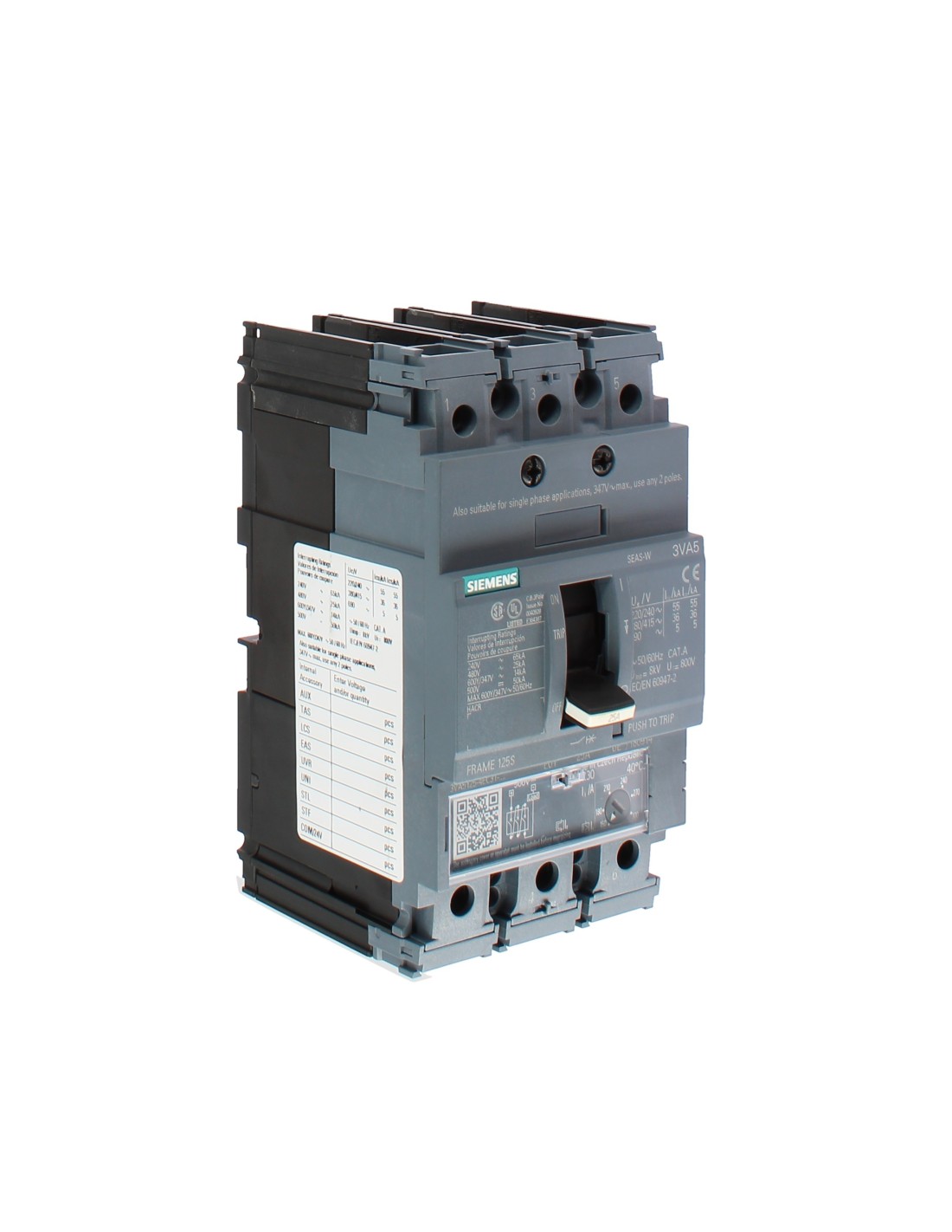 Siemens 3va51254ec310aa0 Mccb ul bg125 disjoncteur automatique 3p 25a 25ka