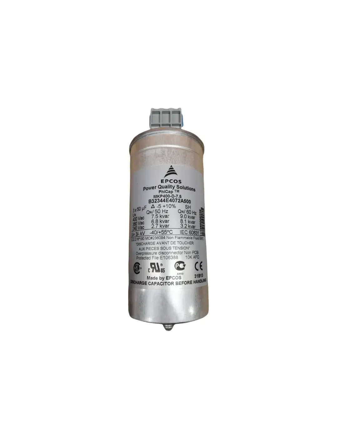 Condensateur Epcos 111665005 phicap sig 400 V 50//60 Hz - 7,5//9 kvar triphasé b32344e4072a500b
