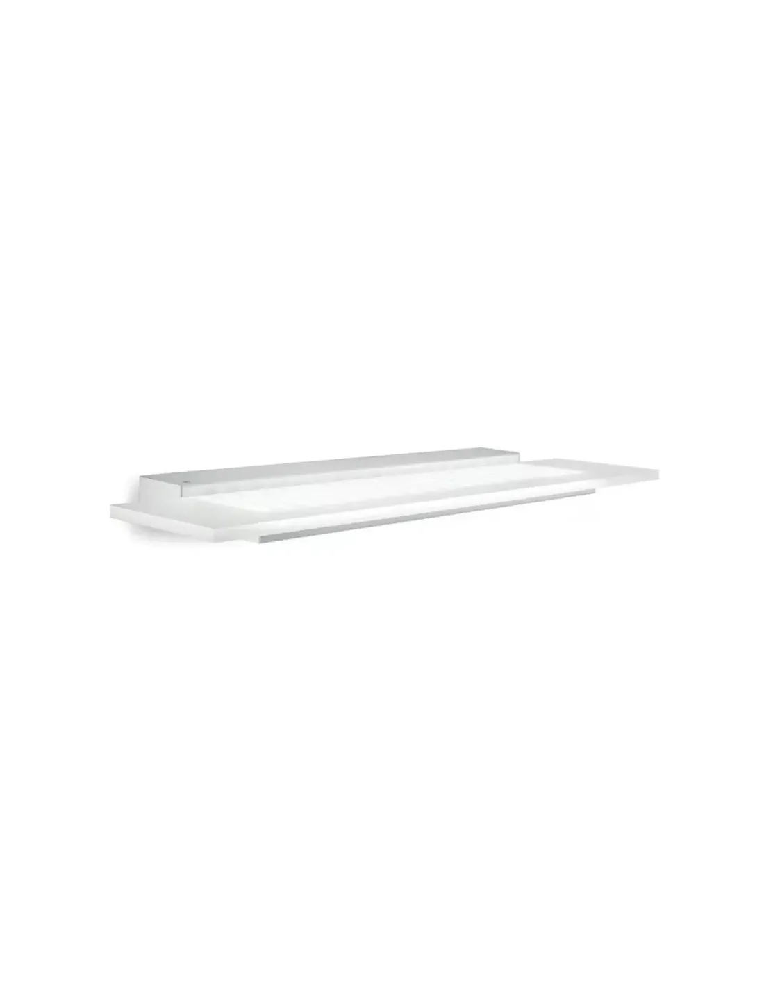 Grande applique murale LED moderne, fine et minimale, en métal peint en blanc, avec diffuseur en feuille de polyméthacrylate de méthyle satiné. Un jeu de transparences, un design minimaliste, une lumière ordonnée qui semble surgir de rien et se propage depuis un mur si fin. lumière qui ressemble à une étagère Matériaux : structure en métal peint en blanc froissé ; diffuseur en polyméthacrylate de méthyle satiné Lumières : 27 W LED 220-240V 3000K - A 3582 lm CRI 90 - LED incluses