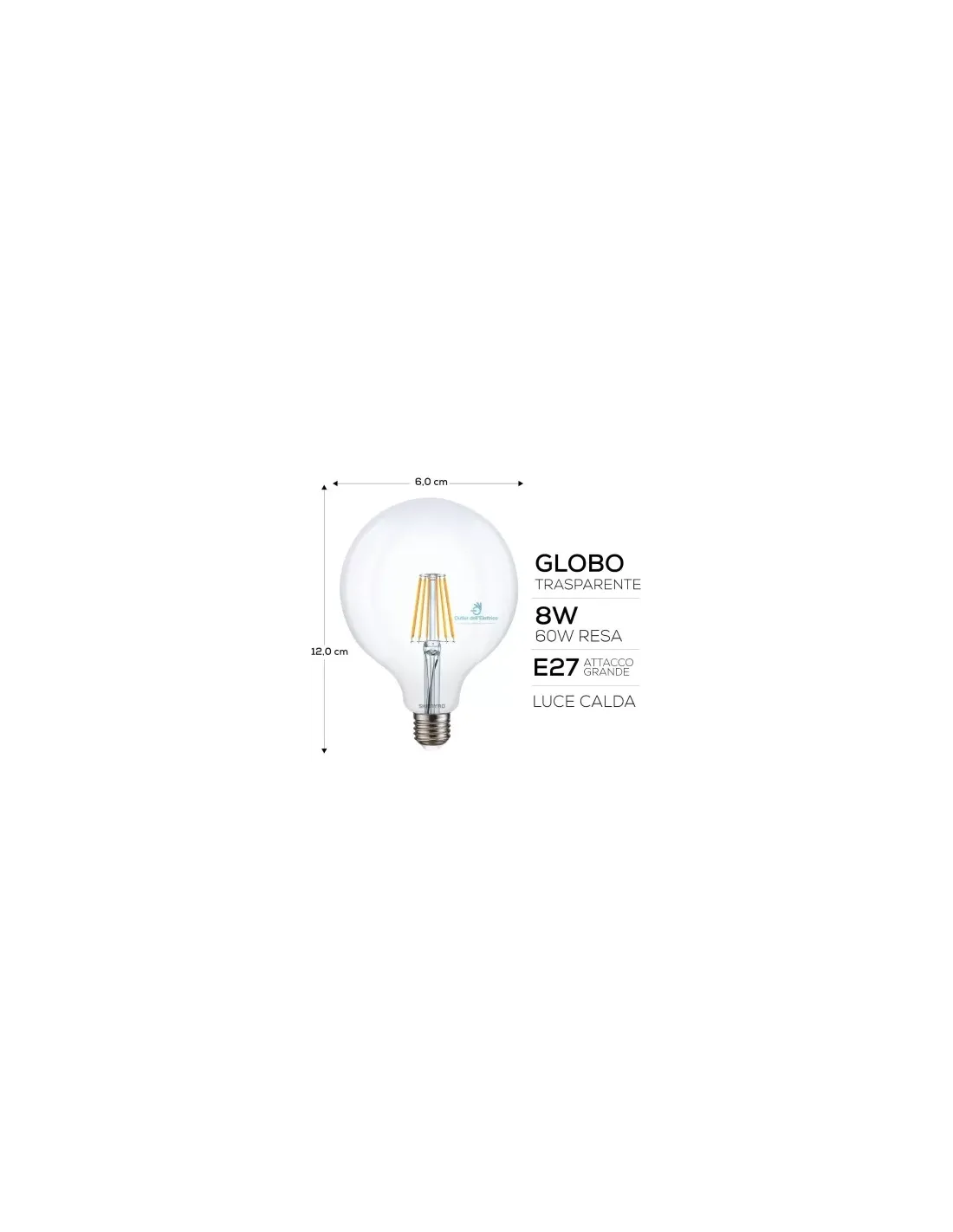 Ampoule LED Shanyao Globo G120 - Grande douille E27 - 8 Watt - Blanc Chaud - 3000K - 880 lumen - Puissance 60W - Angle 360° 125X175mm