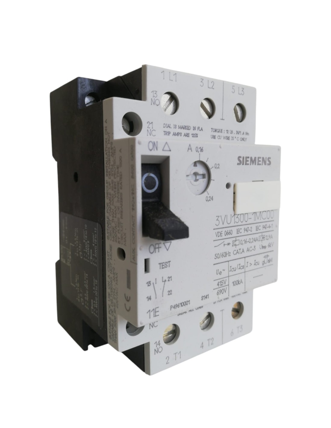Interrupteur de protection moteur Siemens 3vu13001mc00 0,16-0,24 A 1 NO 1 NC