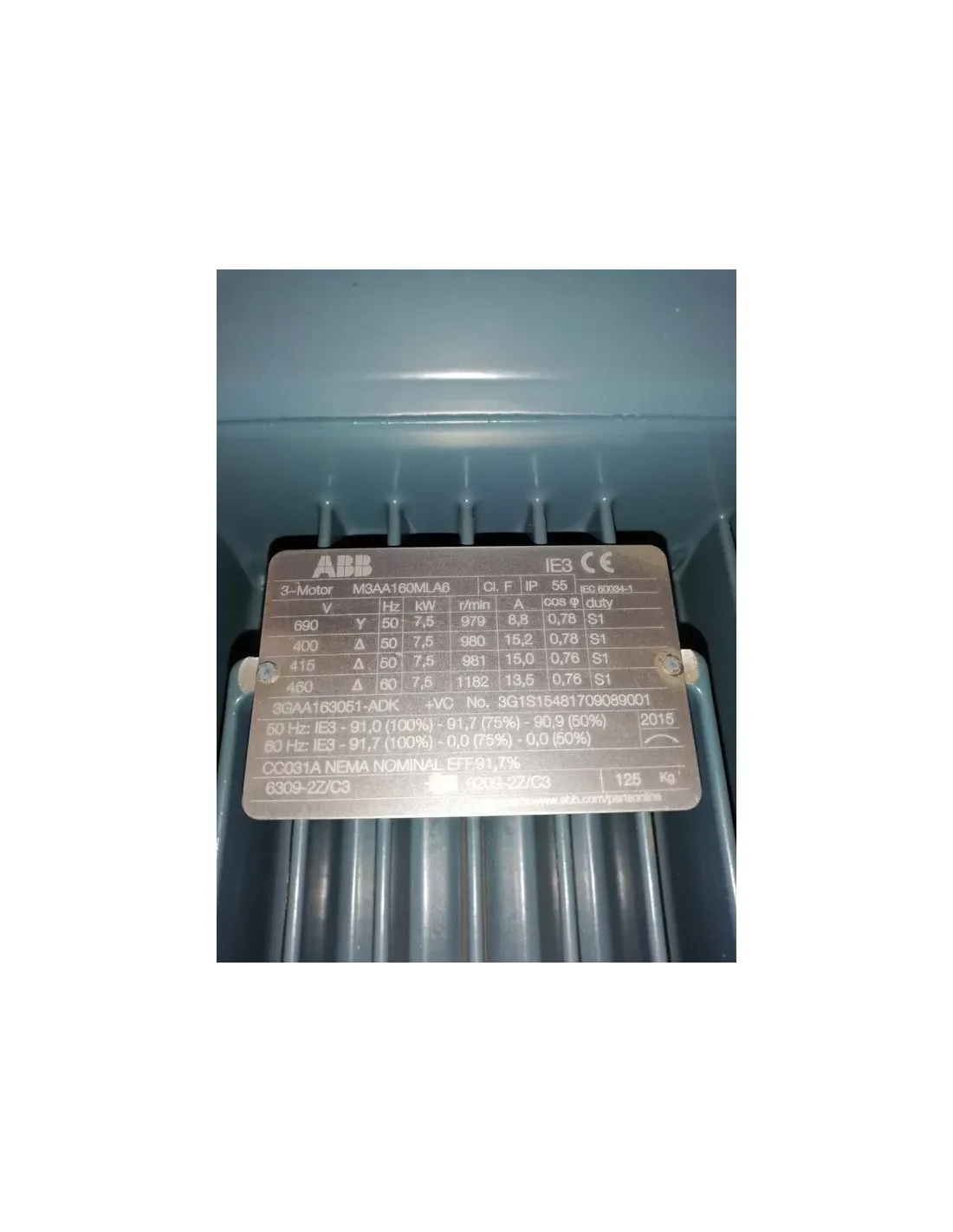 Moteur électrique ABB 7,5 kW 6 pôles IP55 aluminium IE3 400//690 V4 3GAA163051-ADK sans bride
