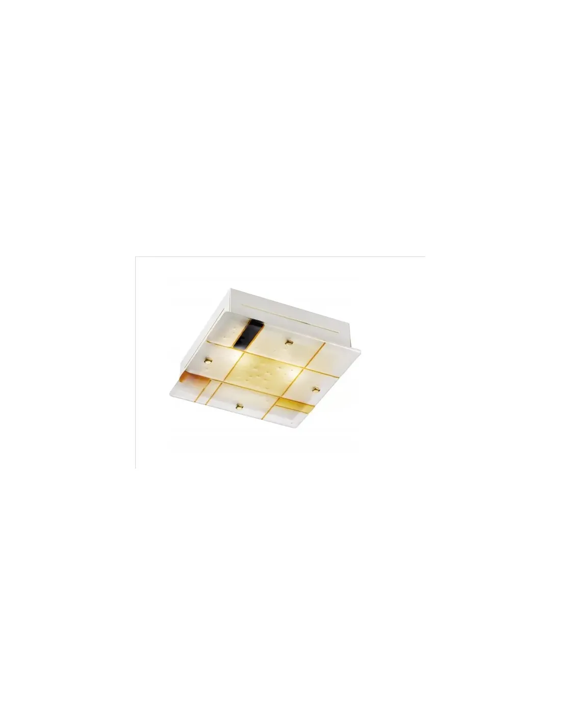 Applique, lampe de table et plafonnier : structure en métal peint et diffuseur en verre fusion de Murano avec décorations ambrées PLAFOND EN VERRE DÉCORÉ CODE PRODUIT 1063Q-55-AM Longueur 570 mm Largeur 570 mm Épaisseur 80 mm Classe énergétique I Code ampoule L 960-20 Puissance 20 W IP 20 Nombre d'ampoules 4 Douille E27 Page du catalogue DECO 402