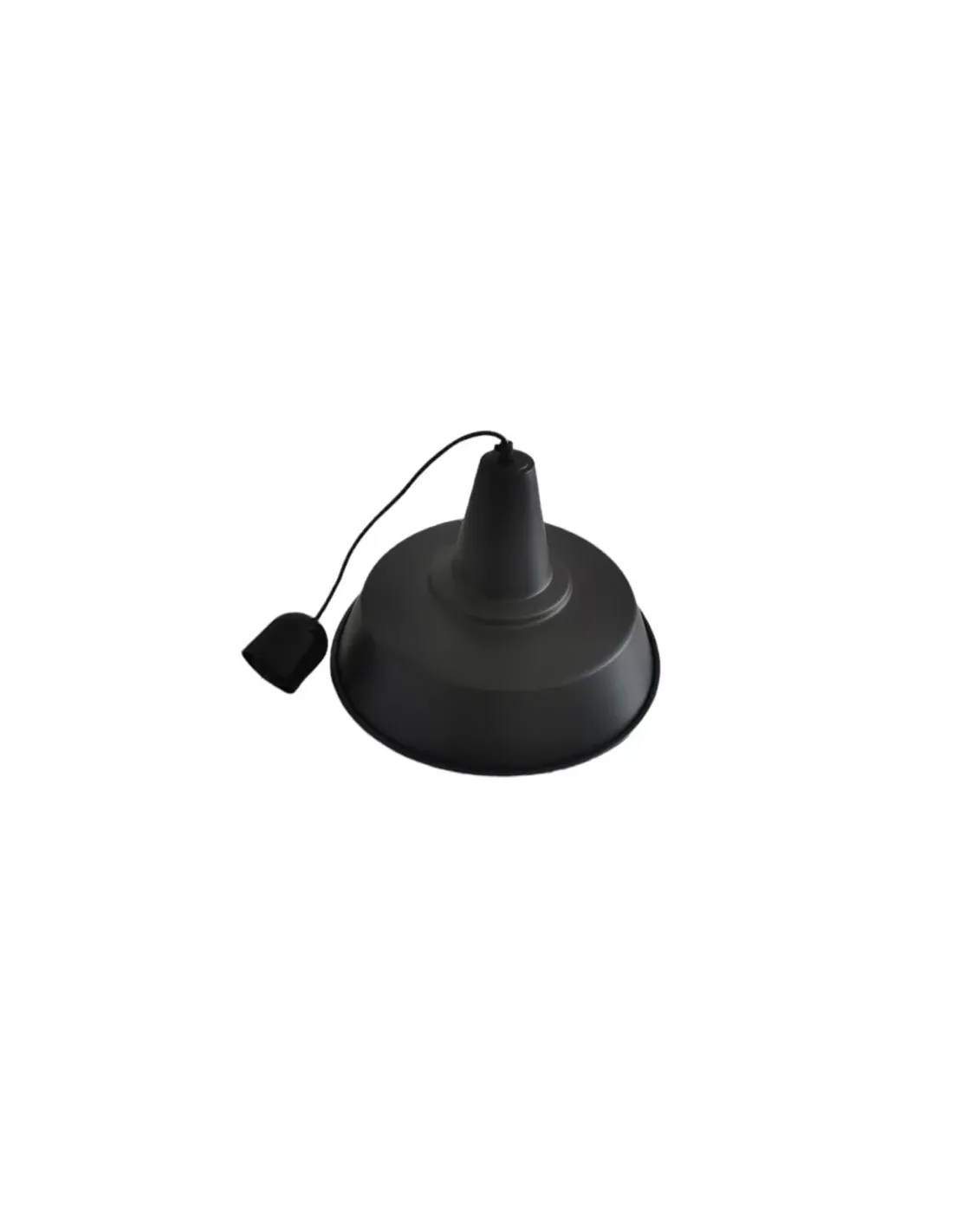 Elleluce suspension chapeau chinois noir d°40 avec câble et rosace E27 intérieur blanc