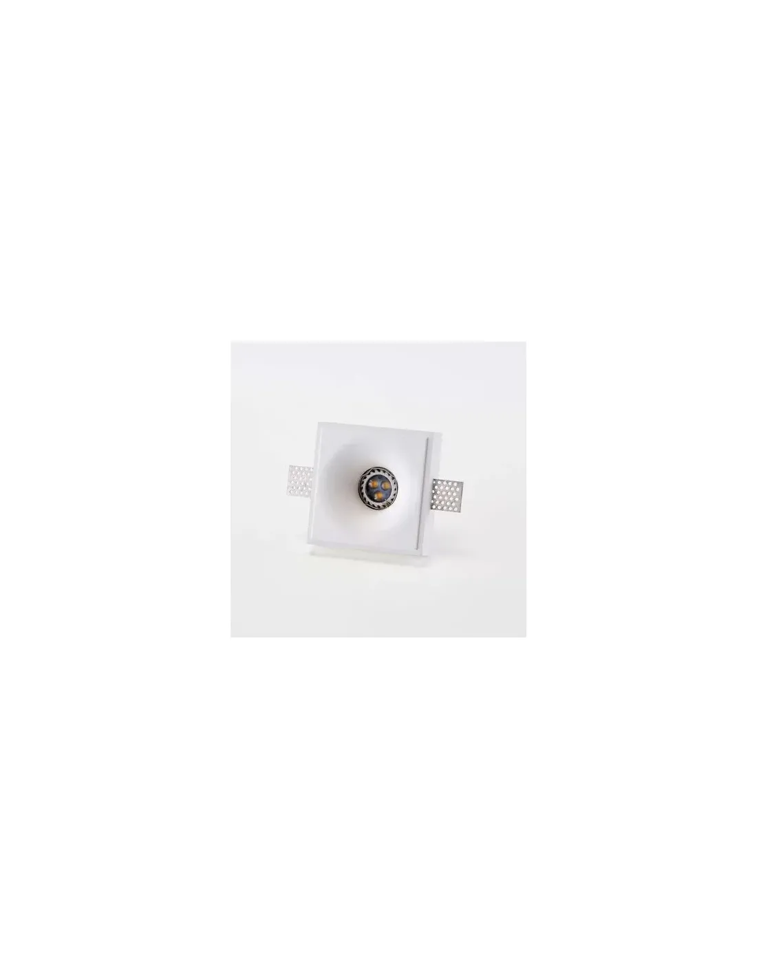 DESCRIPTION Spot carré encastrable en plâtre, montage à encastrer à encastrer avec supports en aluminium intégrés pour plaques de plâtre de 9 à 18 mm Finition pouvant être peinte en blanc Dimensions trou : 105x105 mm, profondeur minimale : 100 mm Raccordement GU10 max 4 5W LED Appareil sans ampoule AVANTAGES Design élégant CONSEILS D'UTILISATION Classe de protection 2 : protection supplémentaire via des câbles à double isolation