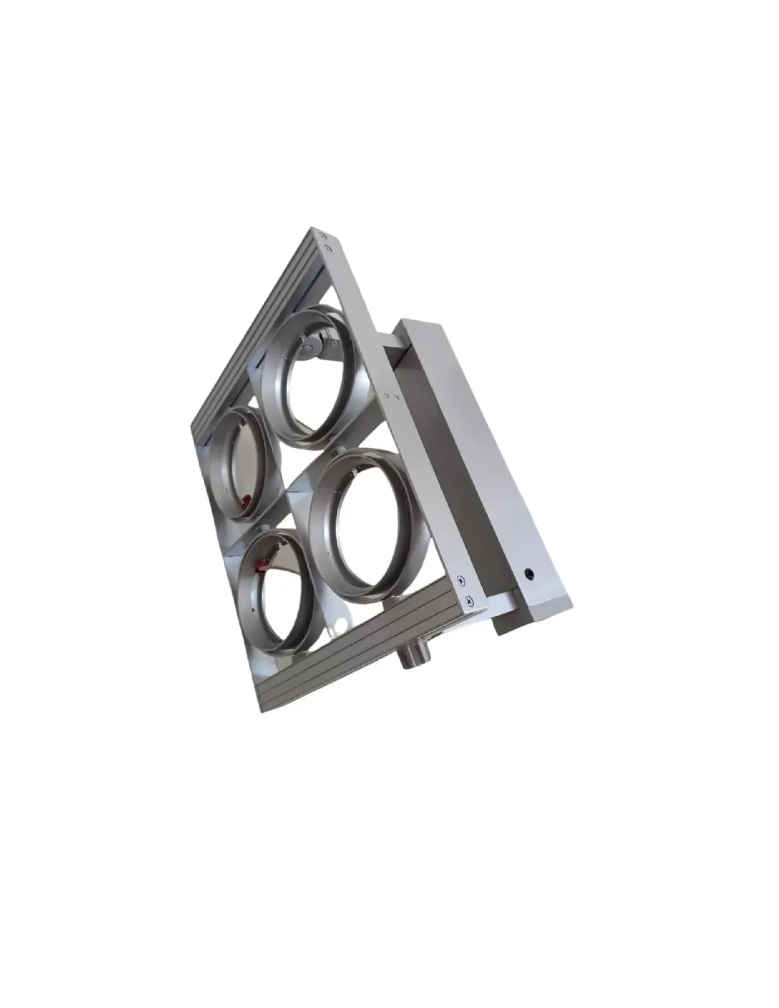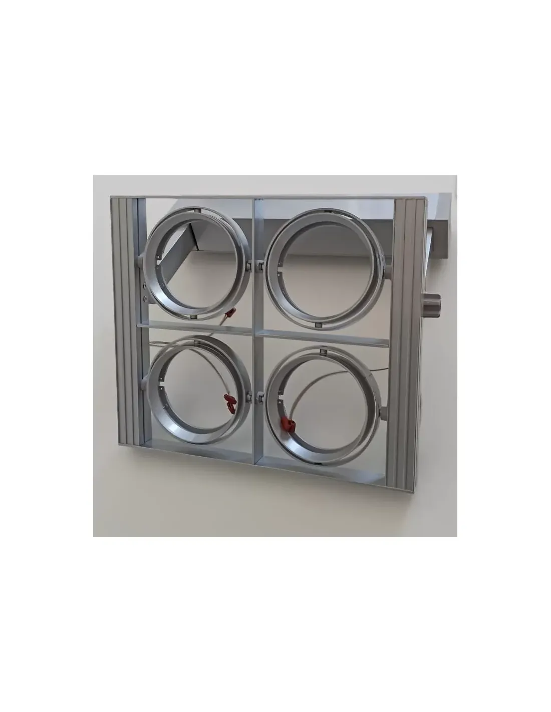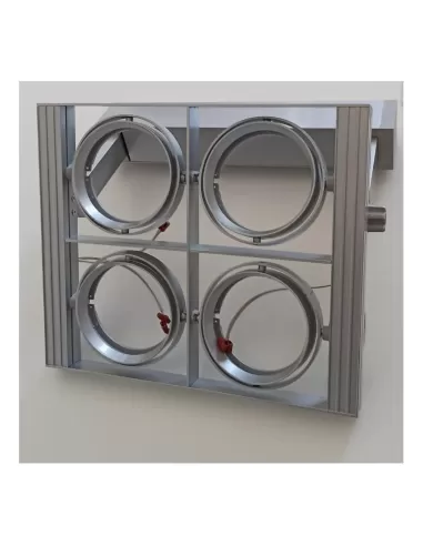 Equipé d'une capacité d'accueil jusqu'à quatre lampes AR111 de 50 watts avec culot G53 et alimentation 12V, ce projecteur garantit une luminosité puissante et réglable, adaptable à vos besoins d'éclairage spécifiques. Son design gris élégant ajoute une touche de modernité et de style à tout environnement intérieur.