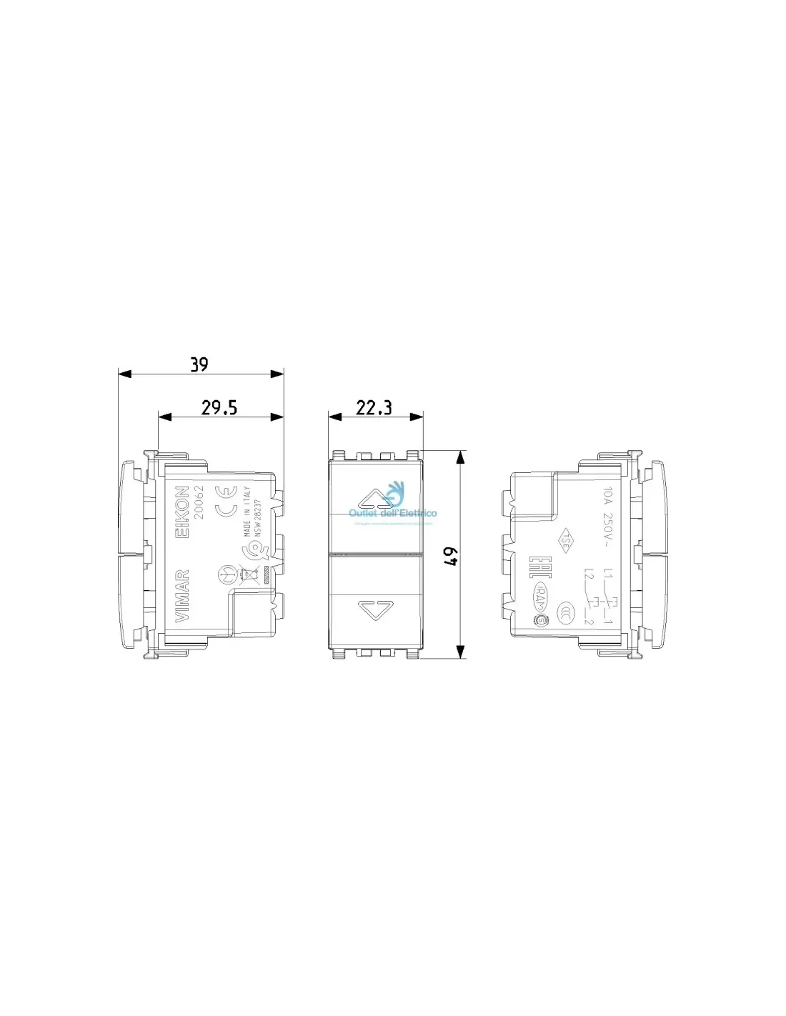 Deux boutons de verrouillage. NO+NO 10A blanc Deux boutons interverrouillés 1P NO + 1P NO 10 A 250 V~, avec flèches directionnelles, blanc