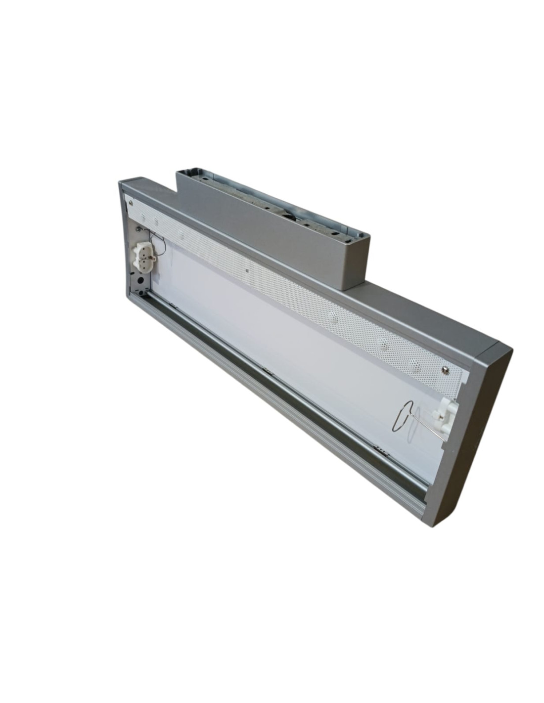 • Materiali: Il vano ottico del prodotto è realizzato con profili laterali in estrusione di alluminio, testate di chiusura in policarbonato stampato ad iniezione, struttura interna in lamiera di acciaio e carter di copertura interno in lamiera di acciaio microforata. Il prodotto è sottoposto a verniciatura a liquido. Lo schermo diffusore è realizzato in policarbonato.